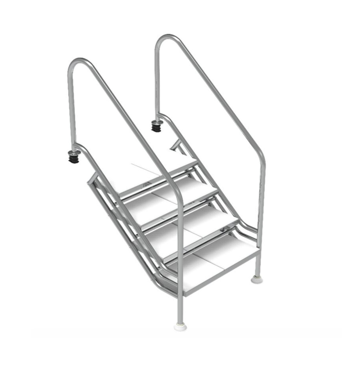 Ajustable en altura. De fácil instalación. En tubo Ø 43 mm de acero inox AISI-316 pulido. Peldaños de material plástico con superficie antideslizante.