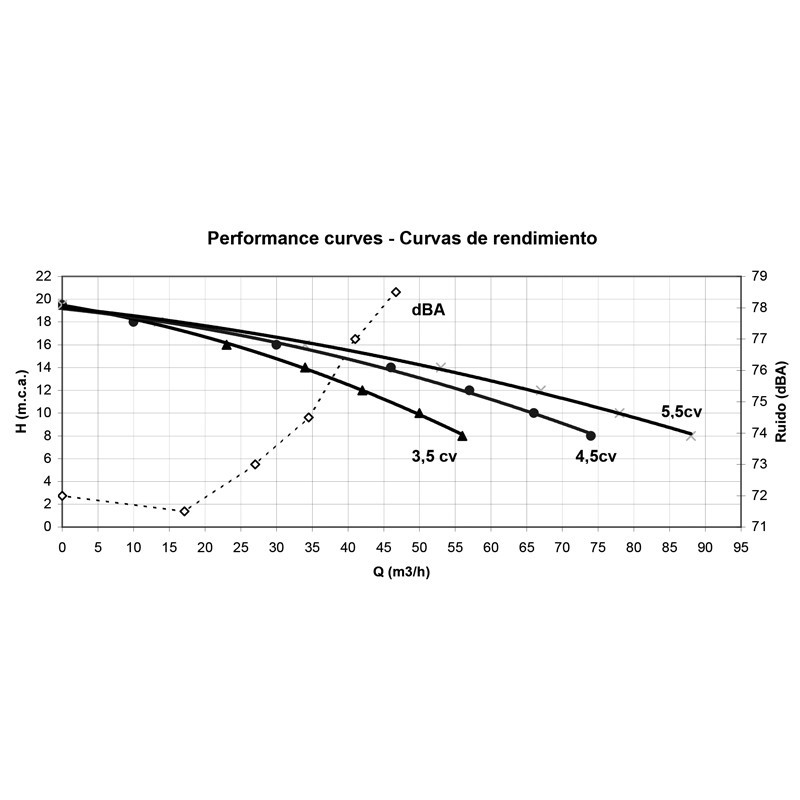 • Hay tres versiones con motores trifásicos de 3.5CV, 4,5CV y 5.5 CV.