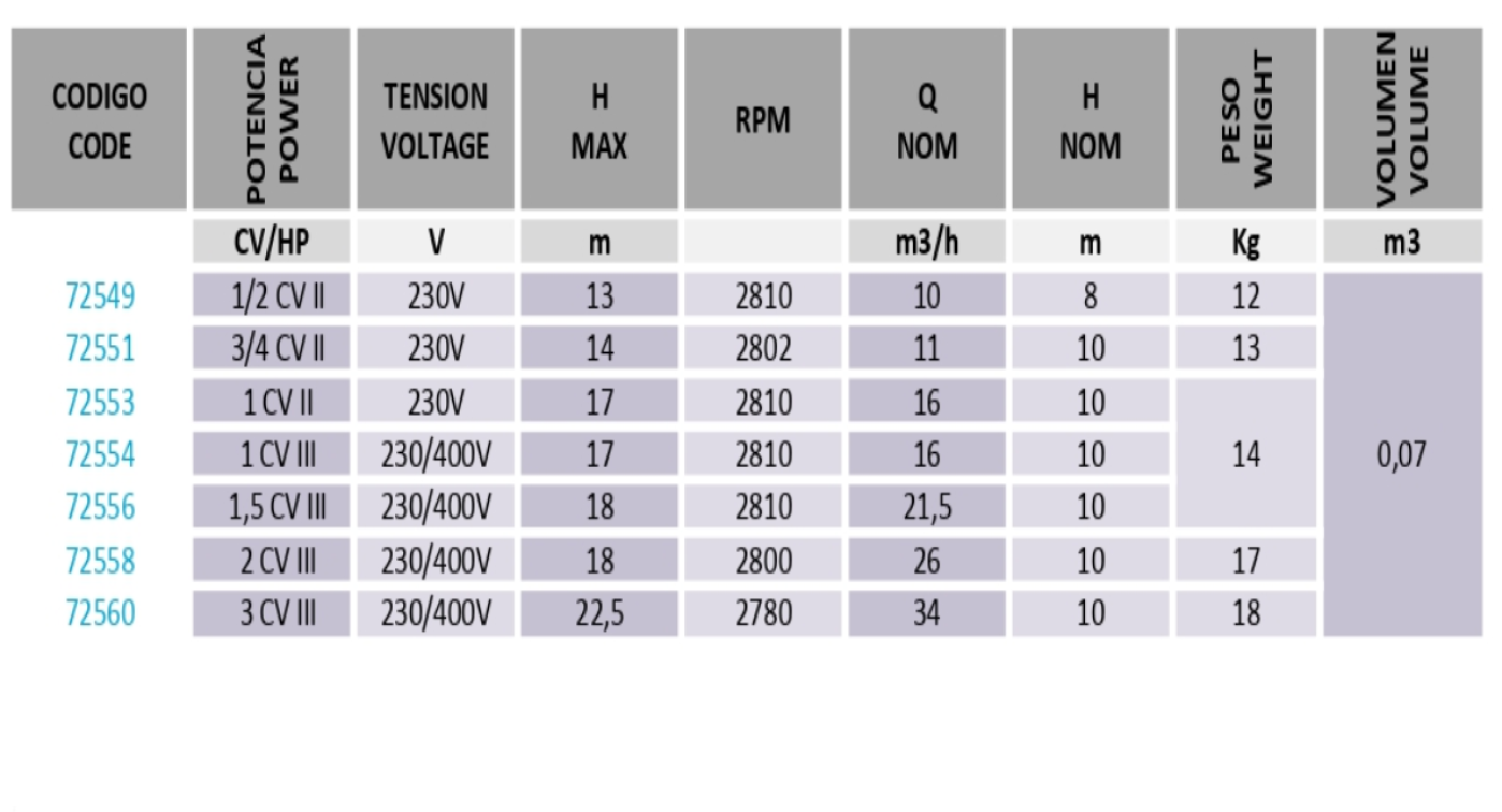 • Códigos 72556, 72558 y 72560 (1.5 CV, 2 CV y 3 CV Trifásicas)