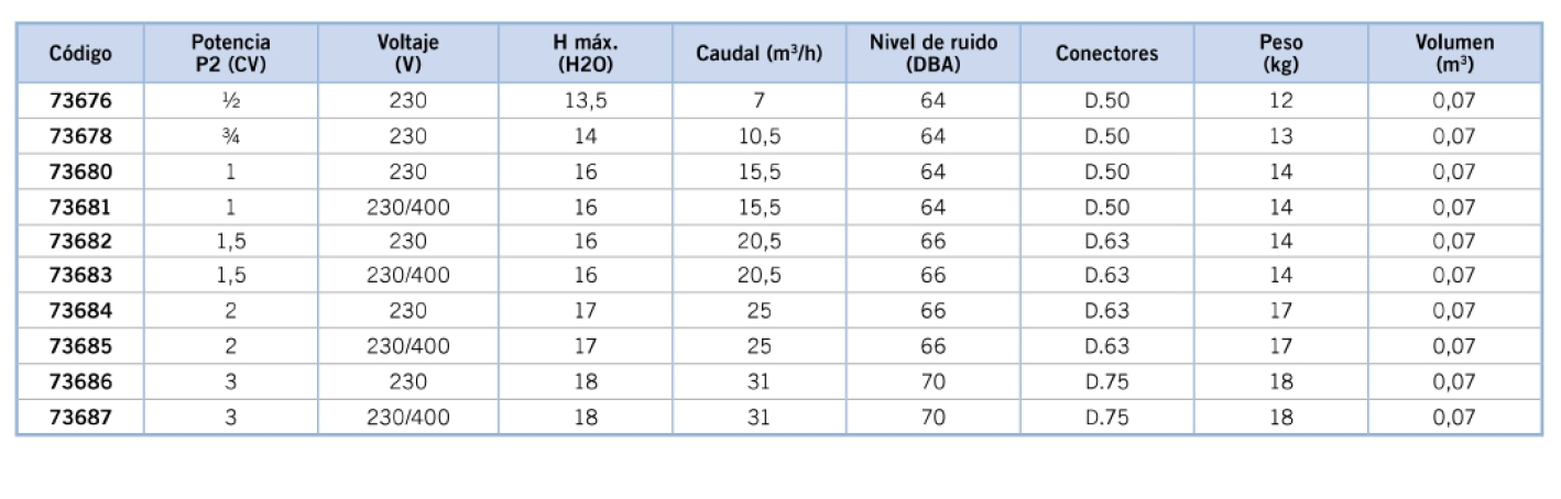 • Motores monofásicos desde 1/2 CV hasta 3 CV y trifásicos desde 1 CV hasta 3 CV.