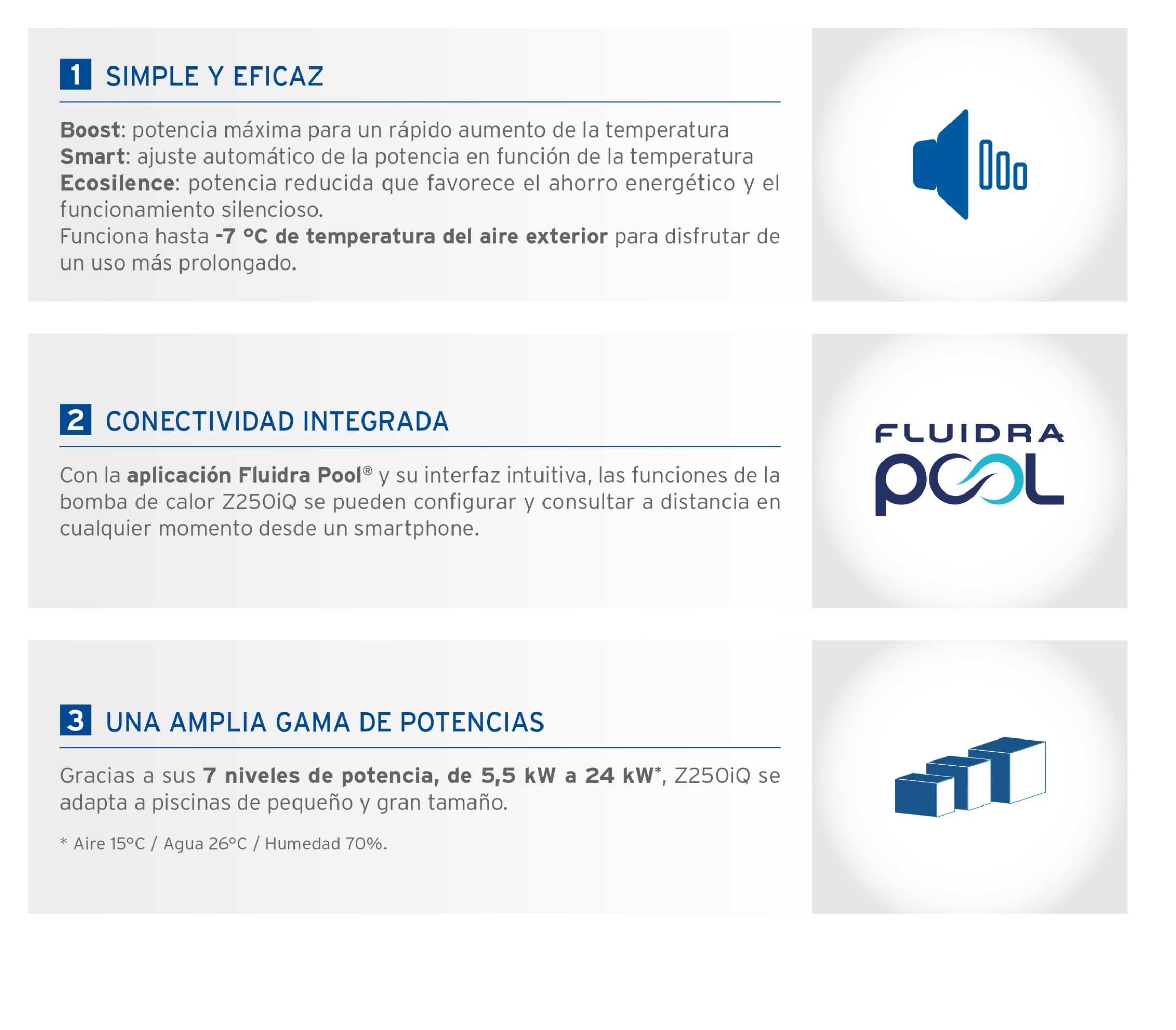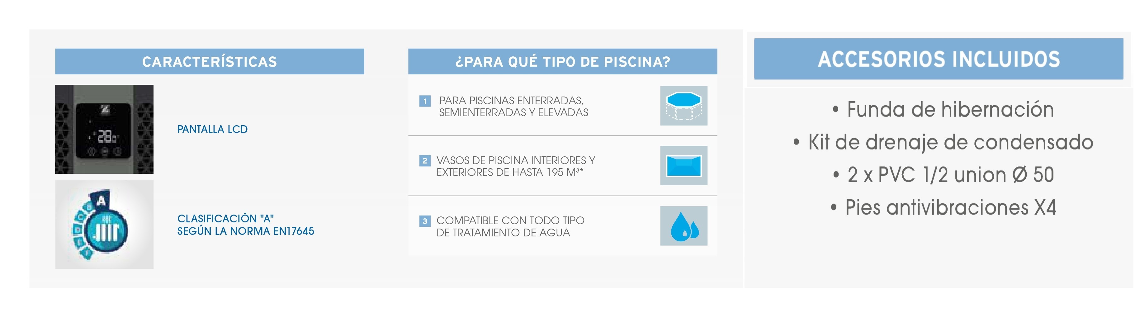 - Ecosilence: Reduce la potencia de la bomba de calor, para un ahorro energético y un funcionamiento silencioso.