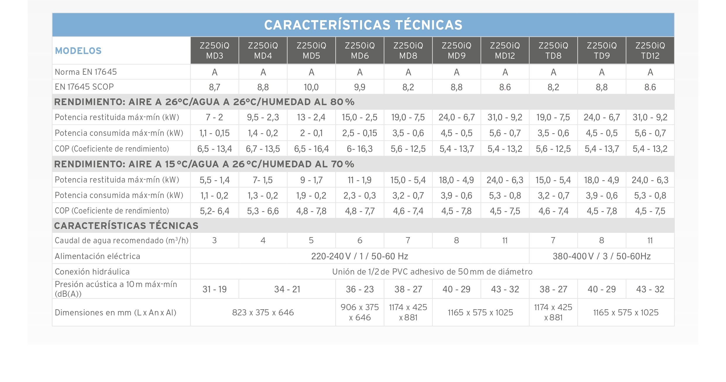 La bomba de calor Z250iQ es ideal para los espacios pequeños y para cualquier configuración. Es un dispositivo muy discreto que ofrece, a su vez, un rendimiento integral. Además, gracias a que la parte superior es giratoria se adapta a cualquier instalación.