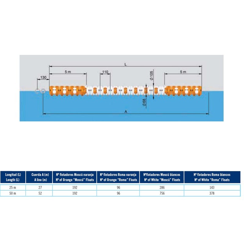 • Permite separar las calles de la piscina y así evitar el oleaje producido por los nadadores.