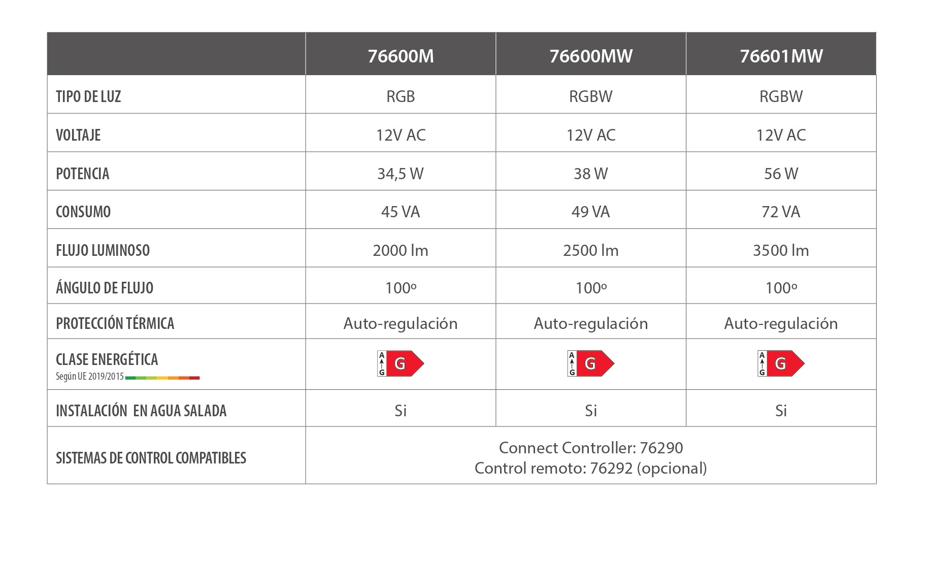 • Debe de funcionar siempre a través del controlador LumiPlus Connect 72690 y la aplicación para teléfono móvil Fluidra Pool (y opcionalmente a través de los controles remotos LumPlus Connect 76292)
